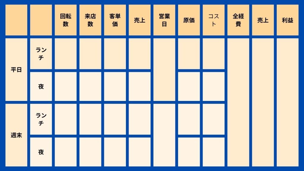 今回の例でいくと、ラーメン店の売上と利益を求める為の仮設の導き出し方です。