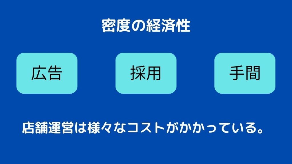 密度の経済性とは、特定のエリアに経営資源を集中して投入することで、優位性を構築できるという理論です。別名で「ドミナント戦略」とも言います。