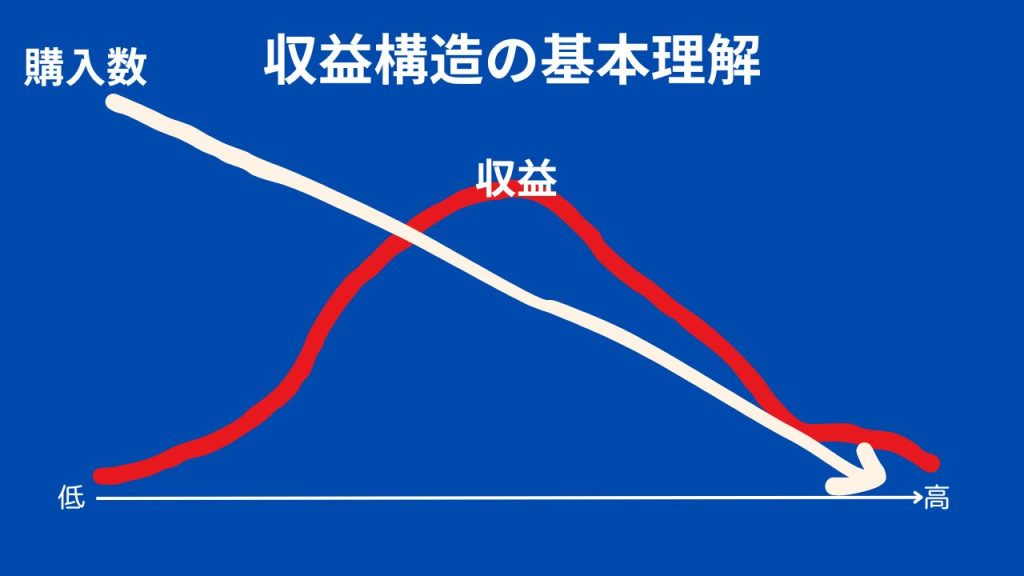 - 収益の基本公式は「購買数×購買単価=収益」。
