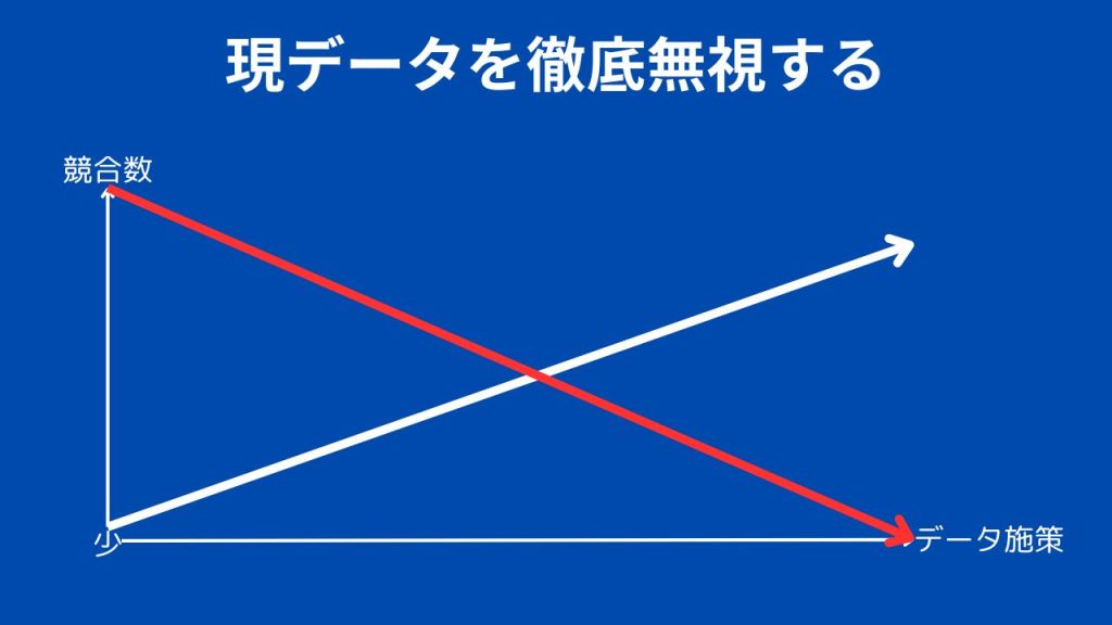 データを取れば取るほど競合のやっているサービスに近づき、同時に競合数も増えていくのです。そして、似た者同士になっていくと価格競争に巻き込まれて利益率を下げなければ戦えなくなるのです。