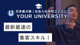 このようなことを学べるのがオンラインビジネススクール UR-U (ユアユニ)です。ビジネスの色々な場面で使えるスキルを実践的に学ぶことが出来ます。しかも、講義のコンセプトは「おばあちゃんでもわかる」ですので、複雑な内容な小難しい言語も簡潔に説明してくれているので、わかりやすいです。私がブログに記してる内容は一部です。もっと深く学びたい人は無料入学も可能ですので検討してみてはどうでしょうか?紹介動画もご覧ください。
