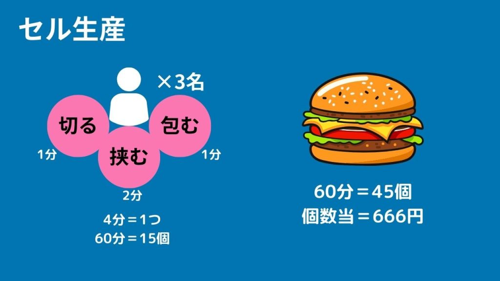 - セル生産の方が生産個数がUP