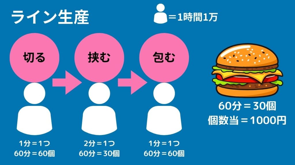 このように生産率を上げたいのであれば「セル生産」の方が向いています。