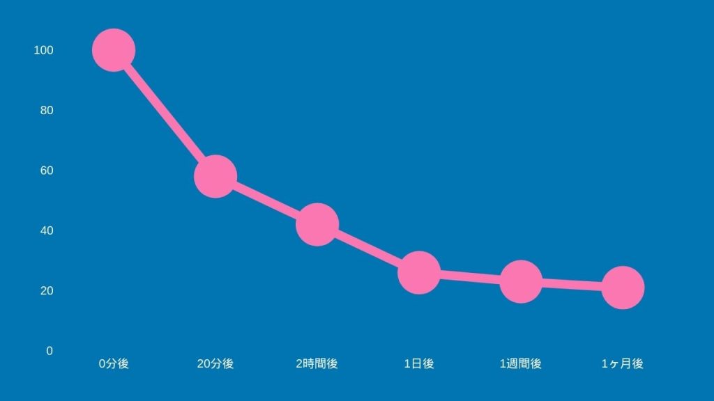 エビングハウスの忘却曲線でも言われている通り、人間の記憶はどんどん減少していきます。