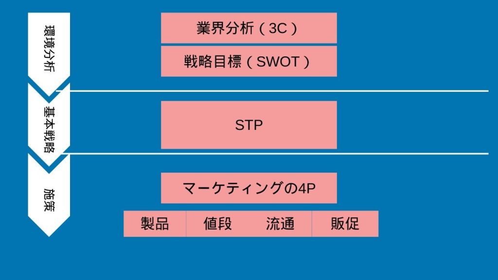 セグメント(S)→ターゲット(T)→ポジショニング(P)の順番で考えていくこととされています。