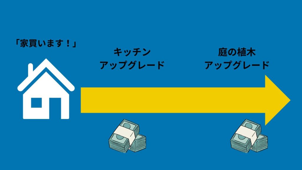 例えば「家を購入する」と言わせてからキッチンのグレードアップ・庭のグレードアップと利益率を上げていく手法です。