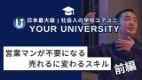 このようなことを学べるのがオンラインビジネススクール UR-U (ユアユニ)です。ビジネスの色々な場面で使えるスキルを実践的に学ぶことが出来ます。しかも、講義のコンセプトは「おばあちゃんでもわかる」ですので、複雑な内容な小難しい言語も簡潔に説明してくれているので、わかりやすいです。私がブログに記してる内容は一部です。もっと深く学びたい人は無料入学も可能ですので検討してみてはどうでしょうか?紹介動画もご覧ください。
